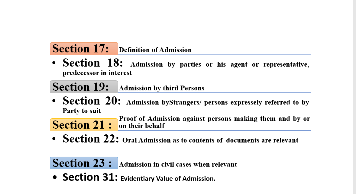 The general principles concerning admission has been dealt with in following Sections: