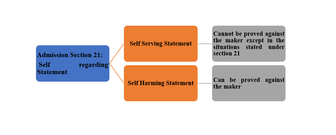 For instance; A states that he is the owner of the property or that B owes him Rs. 2000/- are self-serving statement. A states that he is not the owner of this property or that A owes towards B Rs.2000/- are self-harming statement.
