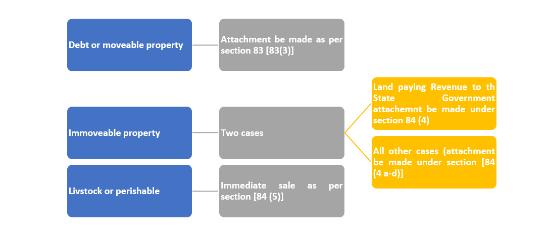 If the property which is ordered to be attached is immovable property, the attachment is to be made through the Collector of the District in the case of land on which revenue is payable to the State Government.